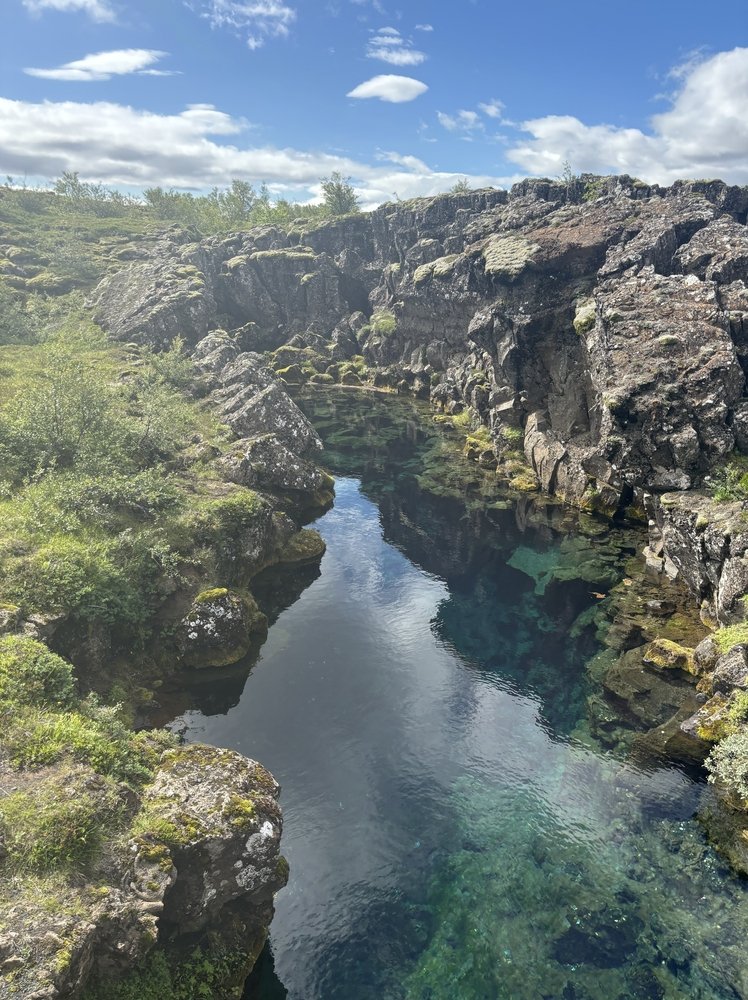 Silfra was created by tectonic activity. Iceland is located on the Mid-Atlantic Ridge, where two massive plates pull apart. Over time, this movement cracked and shifted the lava fields in Þingvellir, opening deep fissures. These fractures continue to change gradually, which is why Silfra feels like a “living” landscape rather than a static landmark.